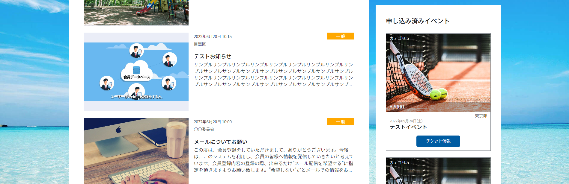 - 申込済みのイベントの中から開催前のイベント情報が表示されます。