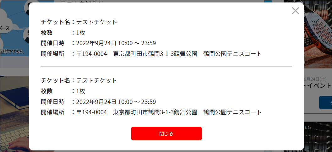 ③「チケット情報」をクリックすると、イベント情報(チケット情報)が表示されます。