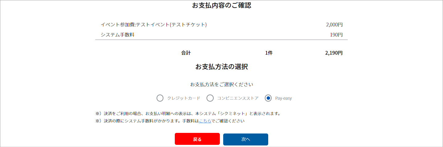 ③お支払い内容を確認し、「次へ」をクリックします。