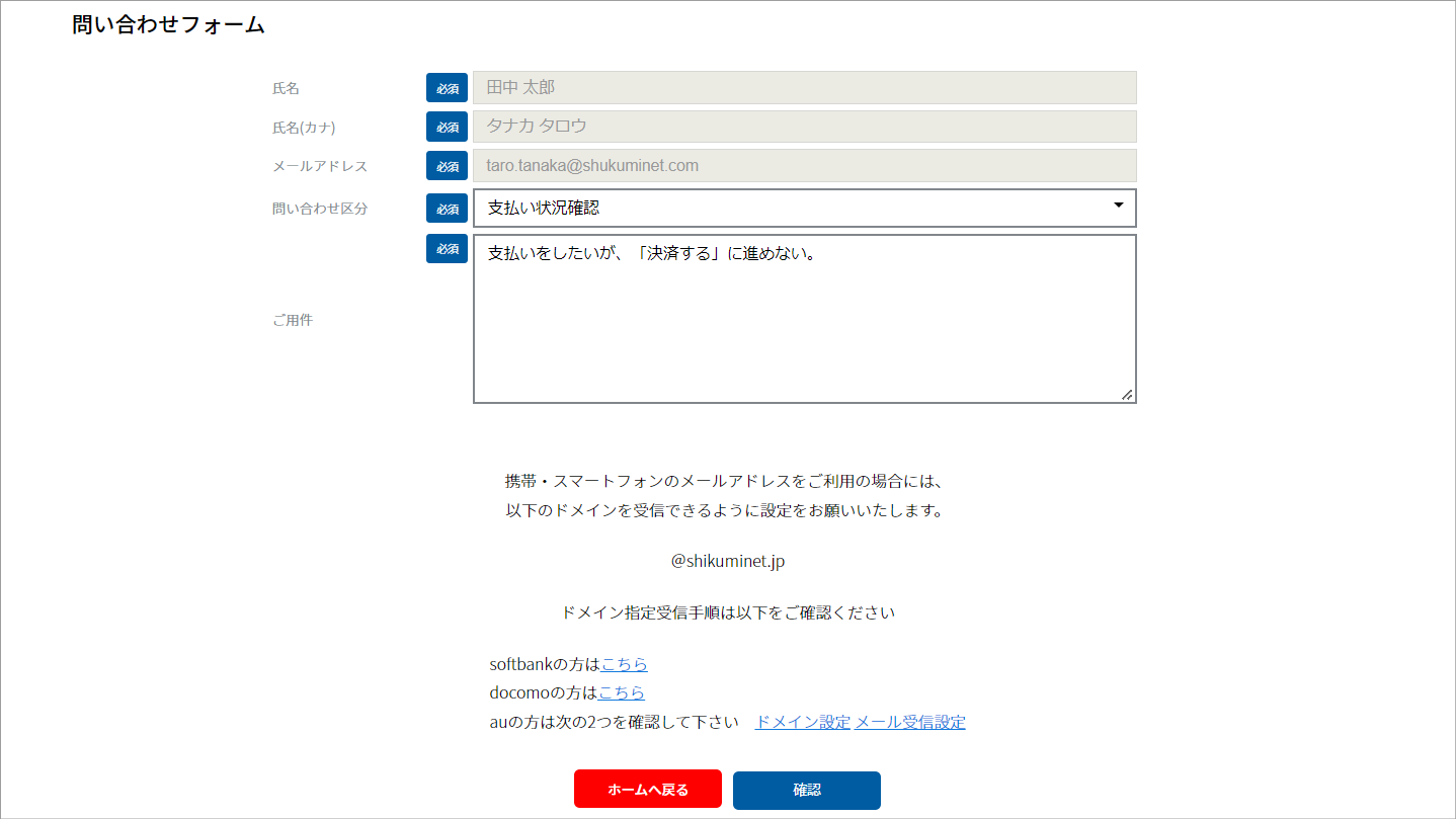 ⑥お問い合わせ内容を確認し、「送信」をクリックします。